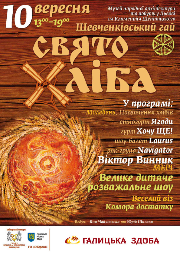 Запрошуємо львів’ян та гостей міста на «Свято хліба - 2017», яке відбудеться 10 вересня у Музеї народної архітектури та побуту у Львові.