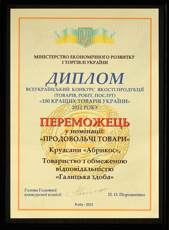 Цьогоріч Галицька здоба™ виставила на суд незалежного журі власні вироби – круасани з абрикосовою начинкою. І результатом стало не просто підтвердження заявленого «Галицькою здобою» високого рівня продукції компанії, але і виділення виробів «Галицької здоби» серед сотень хлібопекарів та кондитерів України. Круасани Галицька здоба™ визнані найкращими в Україні.