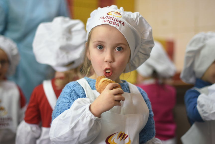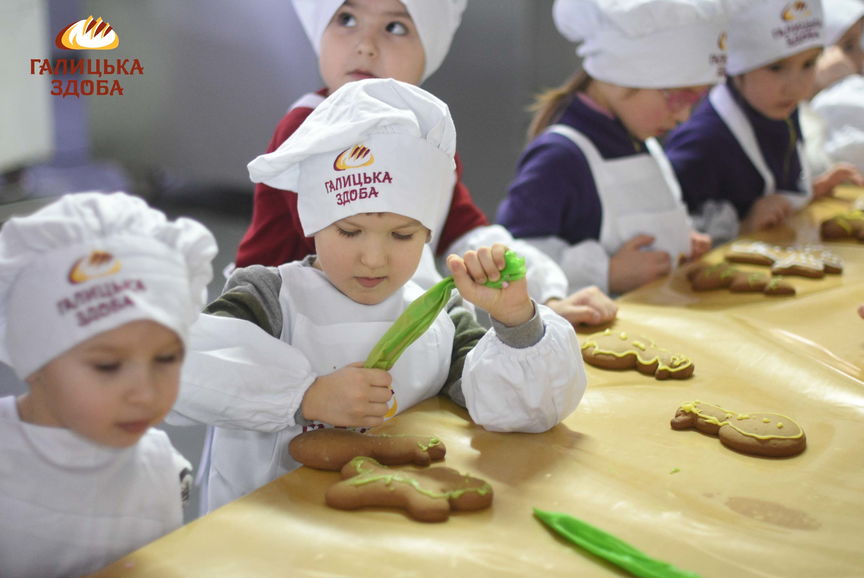 Дошкільнята отримали море позитивних емоцій, а також, малеча власноруч, під наглядом досвідчених пекарів «Галицької здоби», готувала та смакувала солодкі смаколики.