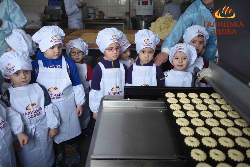 Нещодавно виробничі потужності компанії – хлібобулочний та кондитерський цехи відвідали дошкільнята ДНЗ «Барвінок». Це перші такі маленькі відвідувачі, які стали учасниками екскурсійної програми «Галицької здоби».
